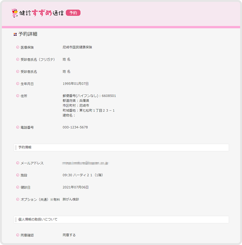 ●予約登録完了メールのURLをクリックして確認画面を表示します。