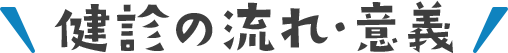 尼崎市総合健診 ご都合の良い日程にご予約可能です 健診のメリット 「健康だから大丈夫」「病院に通っているから関係ない」「忙しくて時間がない」なんて思っていませんか? 健診の流れ 6つのステップで毎年健康管理しましょう。 健診結果の提出について 病院などで検査(健診)を受けた方は、健診結果の提出を願いします。 レディース健診デイ 受診者もスタッフも女性中心の健診日。保育スペースも設置しています。 健康保険指導について 健診終了後、専門スタッフが無料で結果表の数値や、生活習慣との関連をお伝えします。